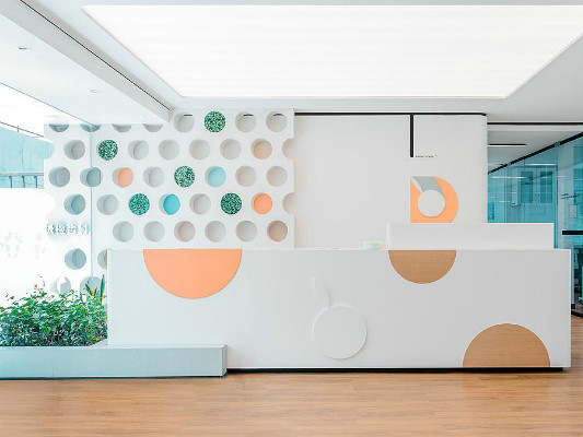 前臺的采光應(yīng)該充足明亮,才能夠起到亮堂堂的效果。也能給人一種蓬勃向上、積極樂觀的企業(yè)形象。